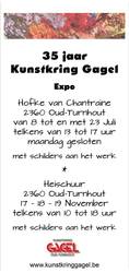 De 37 ste tentoonstelling staat in het teken van “BEWEGING”. De leden van Kunstkring Gagel weten elk jaar hun creaties op een speciale wijze voor te stellen. De diversiteit van de schilderijen toont dat deze vereniging al vele jaren in “BEWEGING” is. De nauwkeurige weergave van stillevens tot familieportret, van ruwere oogopslag van het altijd veranderend landschap tot abstractie, van ochtendrood tot avondschemering, van dagelijks gebeuren tot stiekeme kiekjes onderstreept de diversiteit van kleurnuances en schildersmethoden. Met speciale aandacht voor hun jaarthema "BEWEGING" versterken zij de kunst van het waarnemen van storm tot het langzaam dalen van het eiwit, van gouden Nina tot bereikt sterrenbeeld. Naast deze werken zijn creaties van de workshops nl.gebruik van paletmes en eerste stappen van aquarel te bewonderen.Opnieuw Kunstkring Gagel in “beweging”. Op vrijdag 15 november zijn er leden aan het werk,een moment waar men kennis kan maken met schilderende leden en info van de werking vernemen.Zelf een abstract werk maken met eenvoudig materiaal zal er getoond worden en misschien is dit iets voor één of meerdere bezoekers. De officiële opening van de tentoonstelling vindt plaats op vrijdag 15 november te 19.30u in de Heischuur Oosthoven Oud-Turnhout.